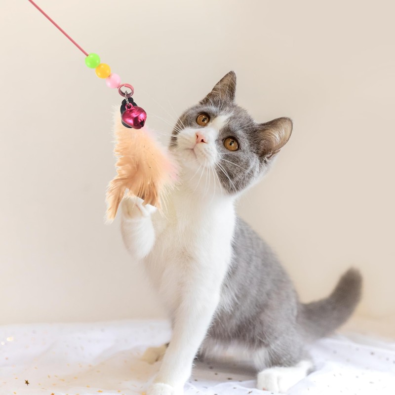 - Package includes: 1 x cat teaser stick, 2 x polygonum cat toys with feather and bell, which can meet the cat's hunting needs, preserve nature and take the kitten boredom.