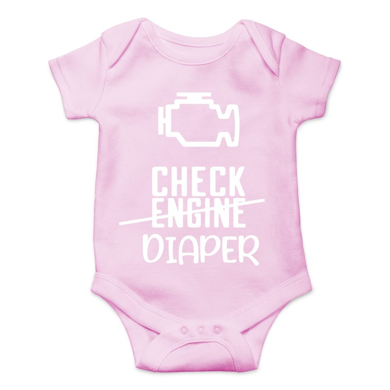 CBTwear Check Engine - Funny Soon to Be Dad Outfits - Cute Infant One-Piece Baby Bodysuit, Pink, Newborn