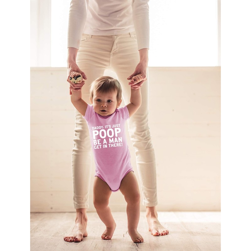 CBTwear Daddy, It's Just Poop, Be A Man Get In Here - New Dad - Cute Infant One-Piece Baby Bodysuit, Pink, 6 Months