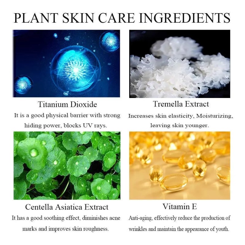 Fórmula vegetal, humectante natural, suave para la piel, maquillaje de larga duración y ajuste a la piel. La base de maquillaje en crema cc es suave y sedosa, delicada y liviana, con una textura gelatinosa. Tiene buena capacidad de esparcimiento y es fácil de empujar. Se adapta bien a la piel. El maquillaje no es aburrido y dura mucho tiempo,