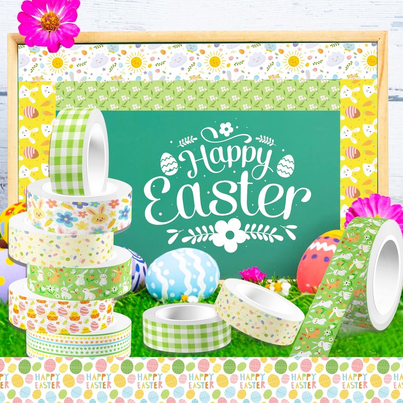 CC HOME Easter Washi Tape 12 Rolls 15 mm Easter Eggs Washi Tape Set, Masking ...