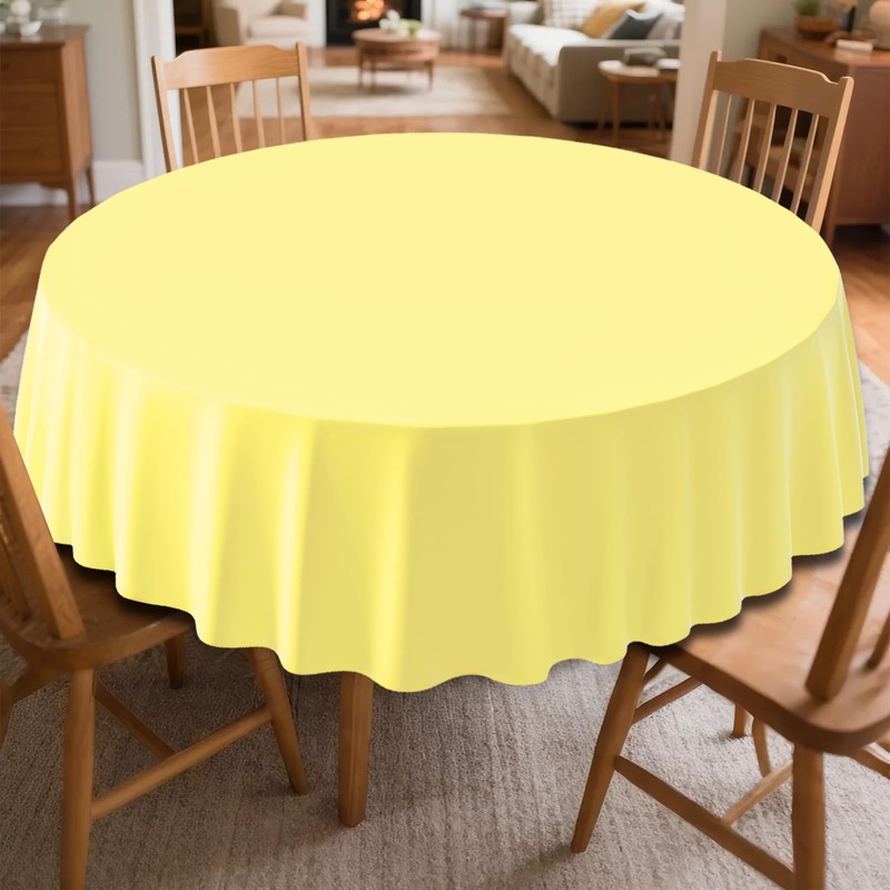 CC-SLZP 3 Pack Premium Plastic Tablecloth, 84 inch Disposable Tablecloths Round Leakproof for Parties, Picnic, Camping, Birthday, Weeding (Light Yellow, Round (3 Pack))