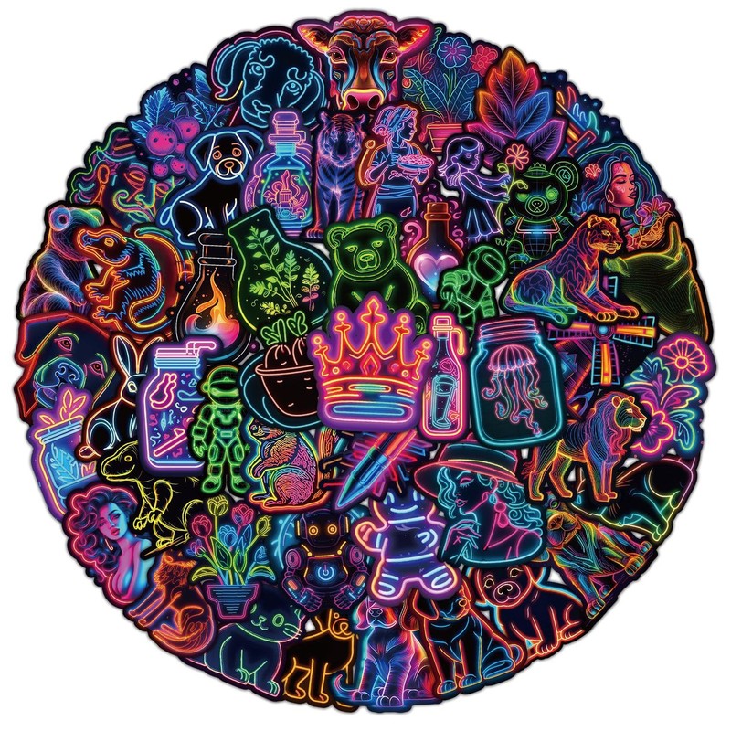 - 【50 PCS Cute Animal Neon Style Stickers】Contains 50 vinyl stickers in different patterns, sizes from 4 to 8 centimetres, with trendy elements, suitable for a variety of occasions.
