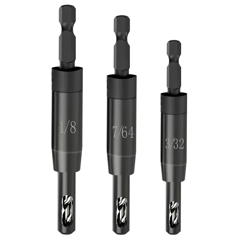 CC2430 3/32", 7/64", 1/8" Self Centering Drill Bit VIX Bit for 1/4 in Clic-Change Hex Shank Drill, #6 8 10 Self Centering Hinge Drill Bit Center Finding Drill Bit Set, 3 Piece