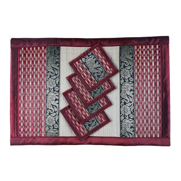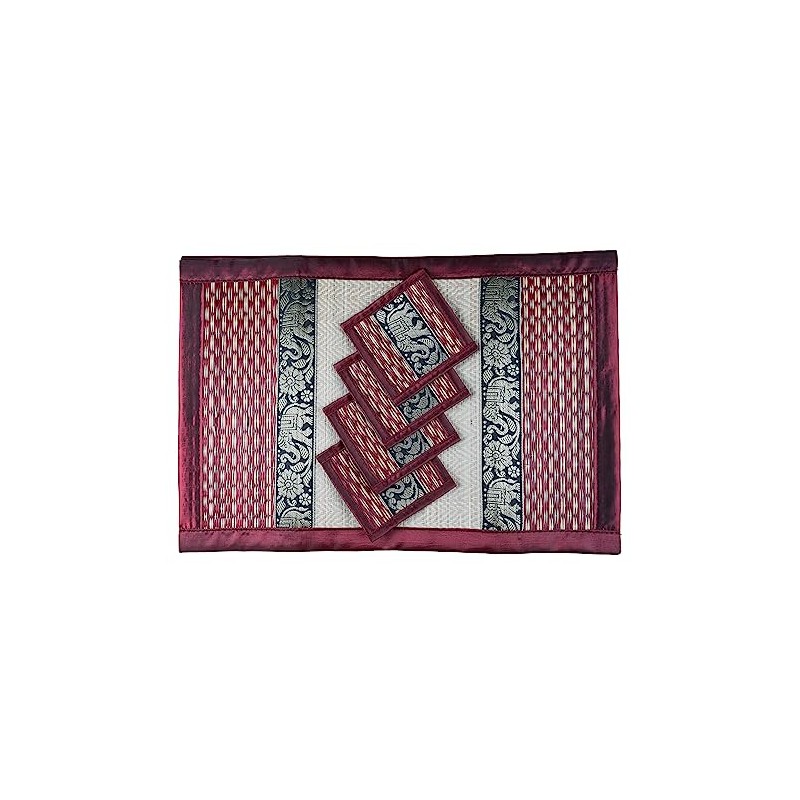 Cccollections Hand-Woven Table Placemats & Coasters Set for Everyday Dining | Thai Style Wicker Placemats Alternative to Plastic Heat Resistant - 4 Pcs