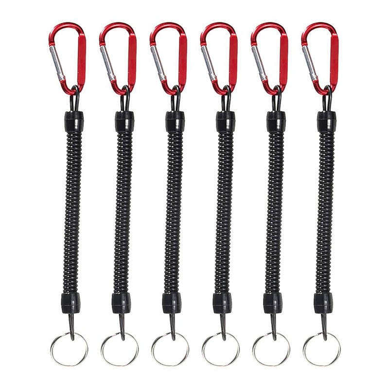 ccHuDE 6 Pcs Heavy Duty Fishing Gear Lanyards Coiled Lanyards Safety Coil Lanyards Retractable Coiled Tethers with Carabiner for Pliers Red