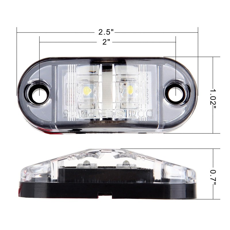 cciyu 2x Oval 2.5" Trailer Truck Clear Led Side Marker Lights Lamp 2 Diodes Surface Mount 2.5 Inch Trailer led clearance and side marker lights Boat Marine LED Courtesy Lights