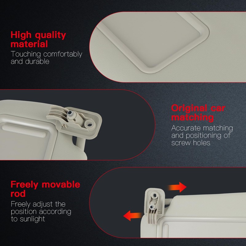 - [Tips] - Package Include: 1 x Car Sun Visor(Driver Side). Precise mounting holes and snaps for a secure fit, no drilling or more screws without any damaging. Install the bracket cover part on the sun visor bracket, and ensure that the two temporary fixing claws are engaged.
