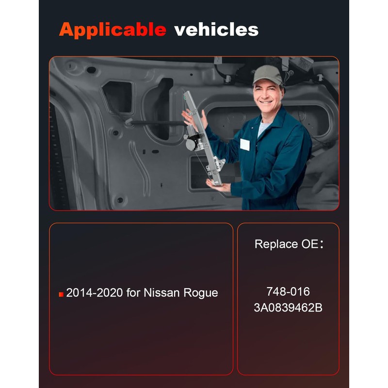 - Compatible For: 2014 2015 2016 2017 2018 2019 2020 for Nissan Rogue Replacement Window Regulator With Motor