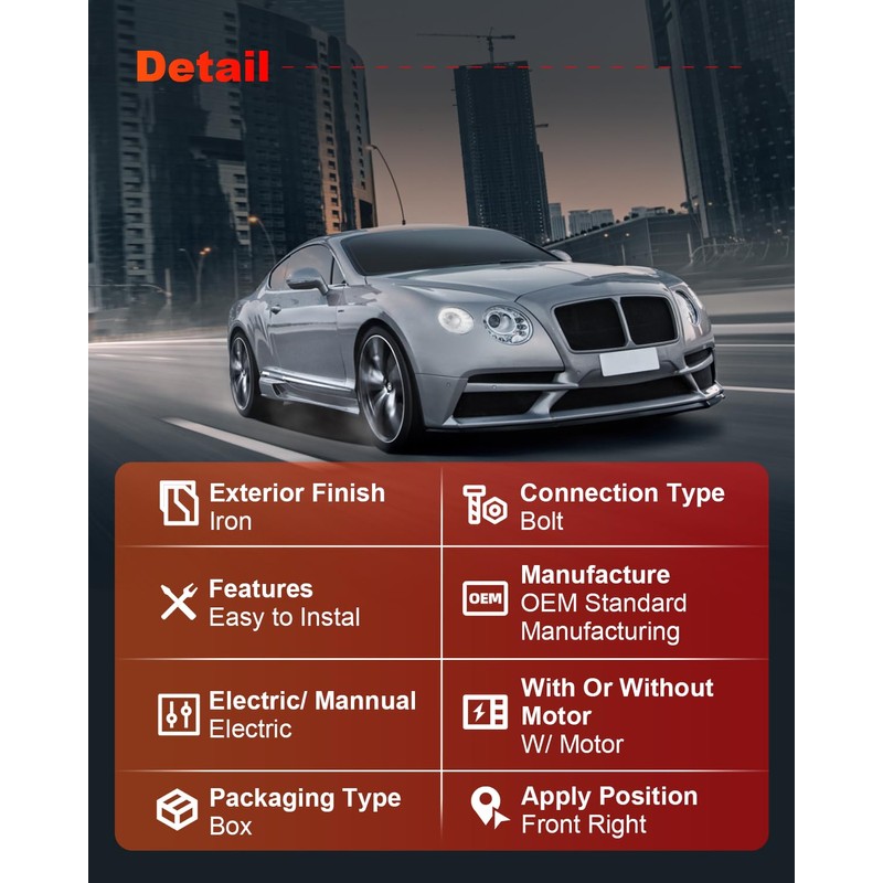 - Installation location:Front Right(Passenger Side) .Plug and Play,NO wire splicing necessary,reliable installation of the hole with the original car exactly the same, easy to install