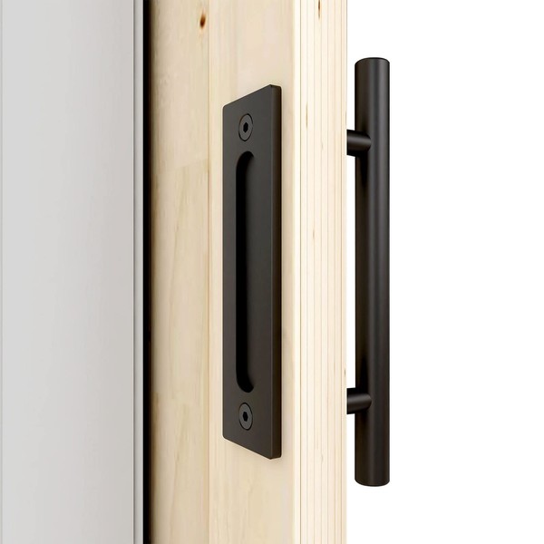 CCJH 12"/30cm Heavy Duty Pull and Flush Door Handle Set in Black, Sliding Barn Door Handle Fit Doors Up to 2 3/8''