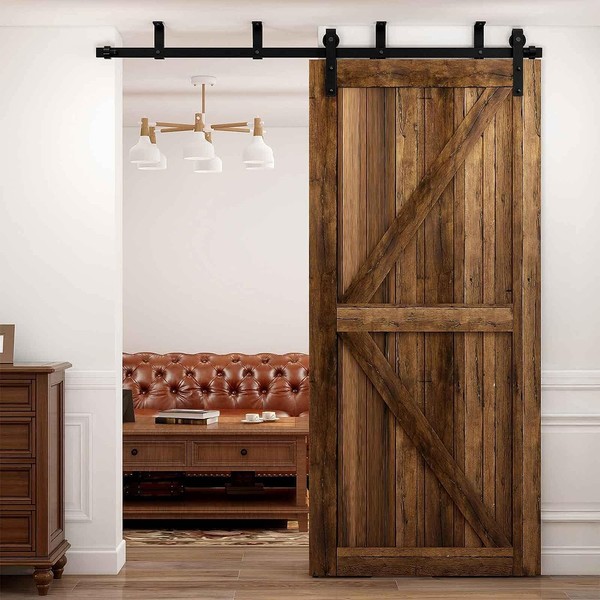 - ✅【Package Includes】1 set of barn door hardware kit(Roller*2, Stopper*2, Spliced sliding track, anti-jump pad*2, floor guide*1,Ceiling bracket and all other needed accessories)HARDWARE ONLY, DOOR PANEL NOT INCLUDED.