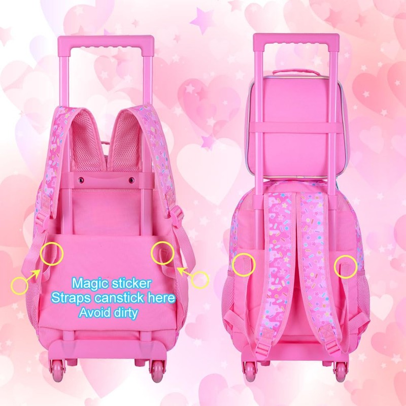 - 【Perfect Rolling Bookbag】This cute and fashionable roller backpacks with wheels is a sweet gift for children's birthdays, daily life, Christmas, Thanksgiving, New Year, homecoming, and other commemorative activities. It is the perfect backpack for girls and an ideal choice for outdoor travel.