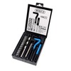 - Box contents: twist drill for drilling the defective threads; tap; 10 x insertion tools for mounting the repair inserts; tenon breaker for removing the screw-in pins