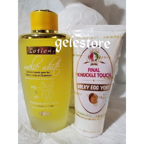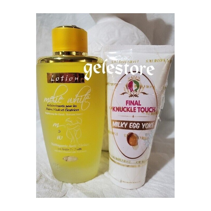 Special unique combo for hands, feed, elbows and knees. Clear your black knuckles, knees, feet and keep them clear with melie white ecclaircissant. Formulated with fruit acid to deeply exfoliates and clear those discolorations. After cleansing wait for 5 minutes and apply your evob final knuckle touch with milky egg yolk cream
