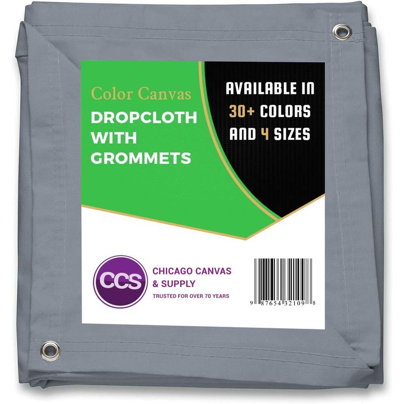CCS CHICAGO CANVAS & SUPPLY 10 Ounce Canvas Cotton Drop Cloth with Grommets, Grey, 10 by 12 Feet