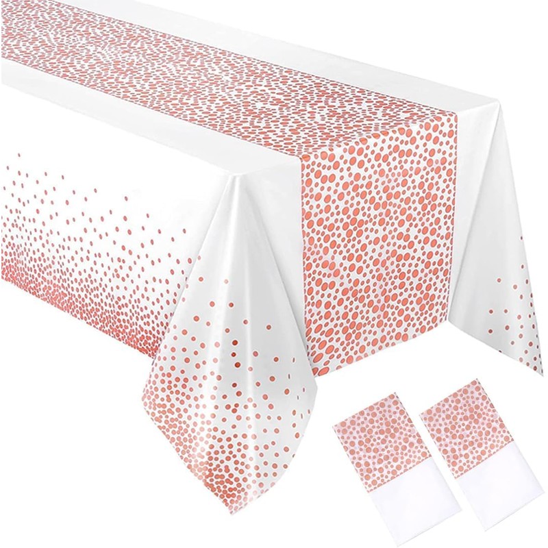 CCSGUI Store Plastic Disposable Tablecloths, 2 Pack 54" x 108" Party Table Cover, Confetti Rectangular Table Cloths for Parties, Picnic, Christmas, Birthday Baby Shower Decorations (Rose Gold)