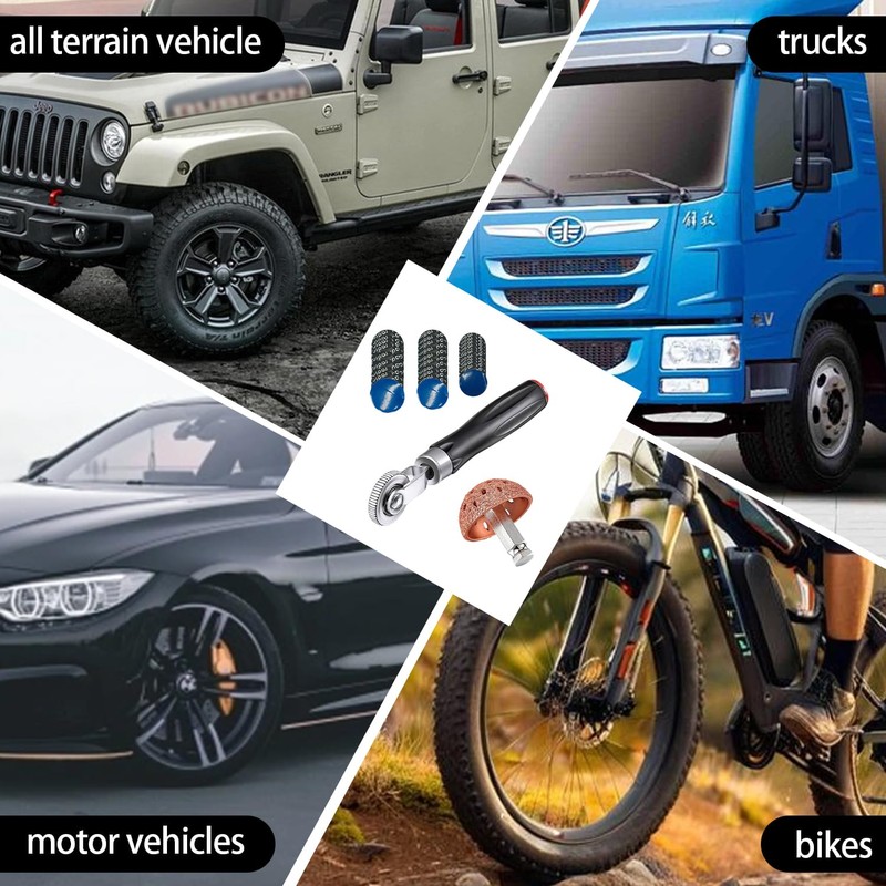 • EASY TO USE---Remove the tire and clean it, polish the worn parts of the tire with a buffing wheel, then evenly apply glue and fill the patch, roll the tire repair roller back and forth to ensure adhesion and sealing, complete the tire repair efficiently.