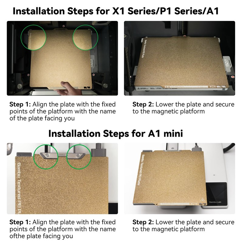 - Compatible 3D printer: Our double-sided textured PEI print bed fits 3D printers with a platform size of 257 x 257, for Bambu Lab X1 X1C X1-Carbon Combo P1S A1. Please confirm your 3D printer platform size before ordering.