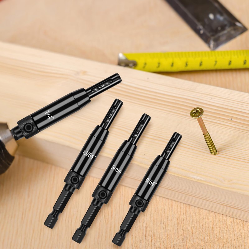 - SIZE: 5/64", 7/64", two 9/64", 11/64", 5mm, 13/64", 1/4", total 8 PCS self-centering hinge drill bits, all are 1/4" hex shank
