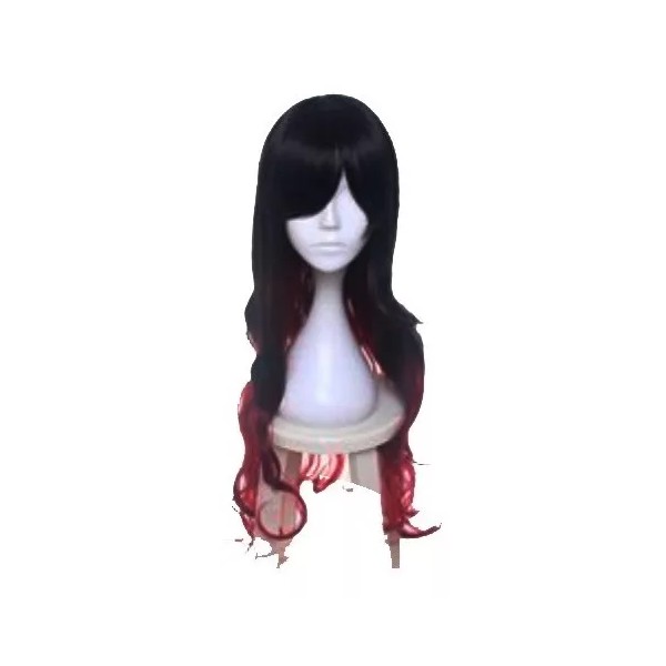 Ccutoo Peluca Ondulada Negro Con Rojo 65cm Cosplay Disfraz