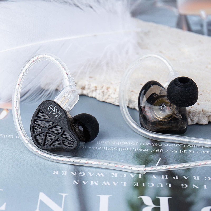 CCZ MC04 1DD + 1BA Hollow Design in Ear Earphone, Bass Sound Wired Earbuds, Silver Plated OFC Cable, in Ear Monitors IEM Earphones with Tangle Controller 3.5mm Plug Detachable 2pin TFZ (Black, No Mic)