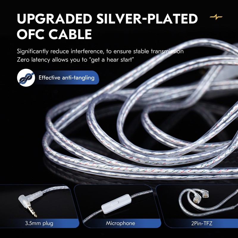 - 【Durable and Tangle-Resistant Silver-Plated OFC Cable】The CCZ MC04 wired earphones use a 3.5mm upgraded silver-plated OFC cable, which effectively prevents tangling and offers exceptional durability. It ensures stable audio transmission with zero latency, making it indispensable for professional audio production, gaming, and other scenarios that require high-quality audio performance.