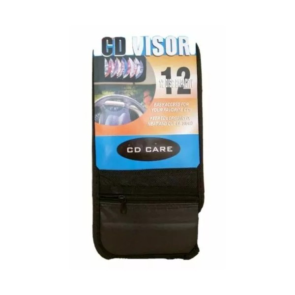 CD Care CD2115: 12 CD Disc Visor Capacity w/ Zipper Pouch - Black