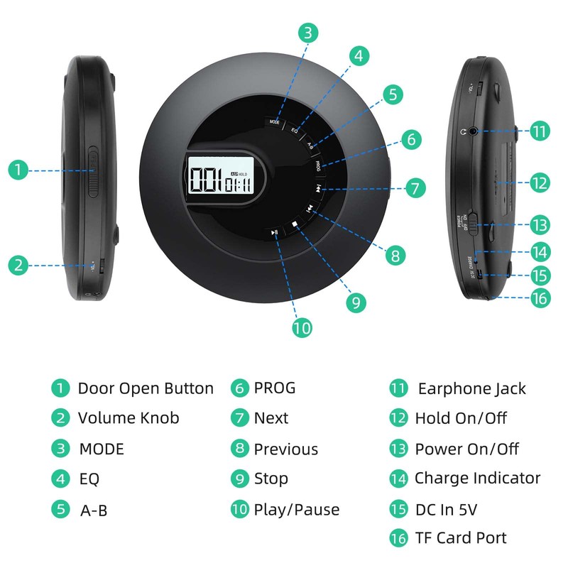 - 【High Quality Material】: The backlight buttons and LCD display design make it possible to be used in dark environments. Over 10 years of professional audio production experience, the CD player owns simple, ergonomic, anti-slip and compact design. You can enjoy music anytime, anywhere.