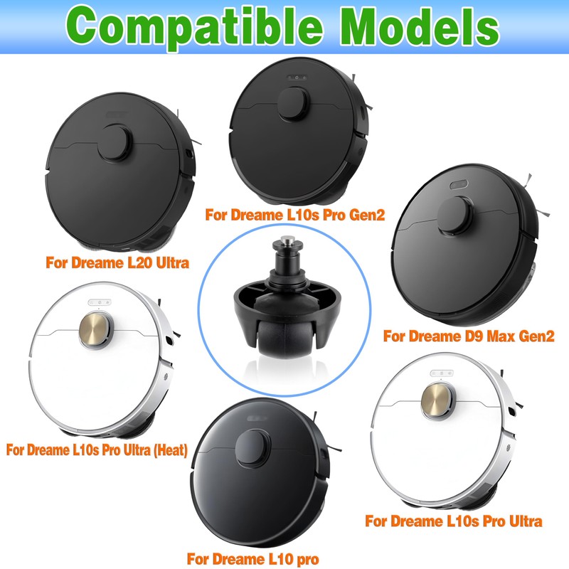 - Compatible model: improved silent universal wheel for Dreame D9/L40 Ultra AE4/L20 Ultra/X40 Ultra/X40 Master/L40 Ultra/L10s Pro Gen2/X30 Ultra/L10s Pro Ultra Heat/L10s Pro Ultra/D9 Max/D9 Max Gen 2/L11. 0s Plus/L1 Plus 0 pro/L10s pro/D10s Pro/ mova L300/L600 Replace wear perfectly.