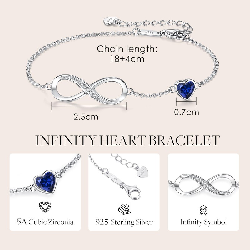 CDE Infinity Heart Symbol Charm Link Bracelet for Women 925 Sterling Silver Stainless Steel Adjustable Anniversary Jewelry Christmas Birthday Gifts for Women Wife Girlfriend Her (Sterling Silver-09-Sept.)