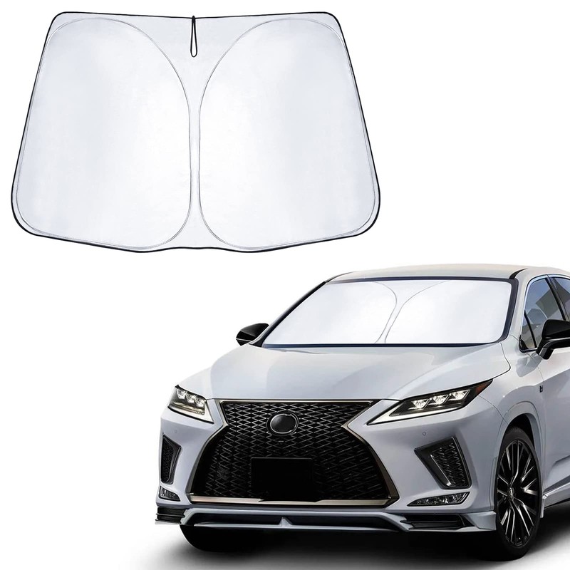 • (Easy to Install & Foldable) The Lexus Rx300 sunshade has a built-in spring wire, so you can open it just by removing it from the case. The Lexus Rx sun shade does not require a suction cup, simply unfold the main body and press the bottom onto the windshield, and then pull down the sun visors down and clip them to your vehicle. When not in use, it can be folded into a 10 shape for compact storage in a door pocket or glove box. (Note: Please note that it requires some tricks to fold, and it may take some time to get used to it. New Lexus Rx Sunshade
