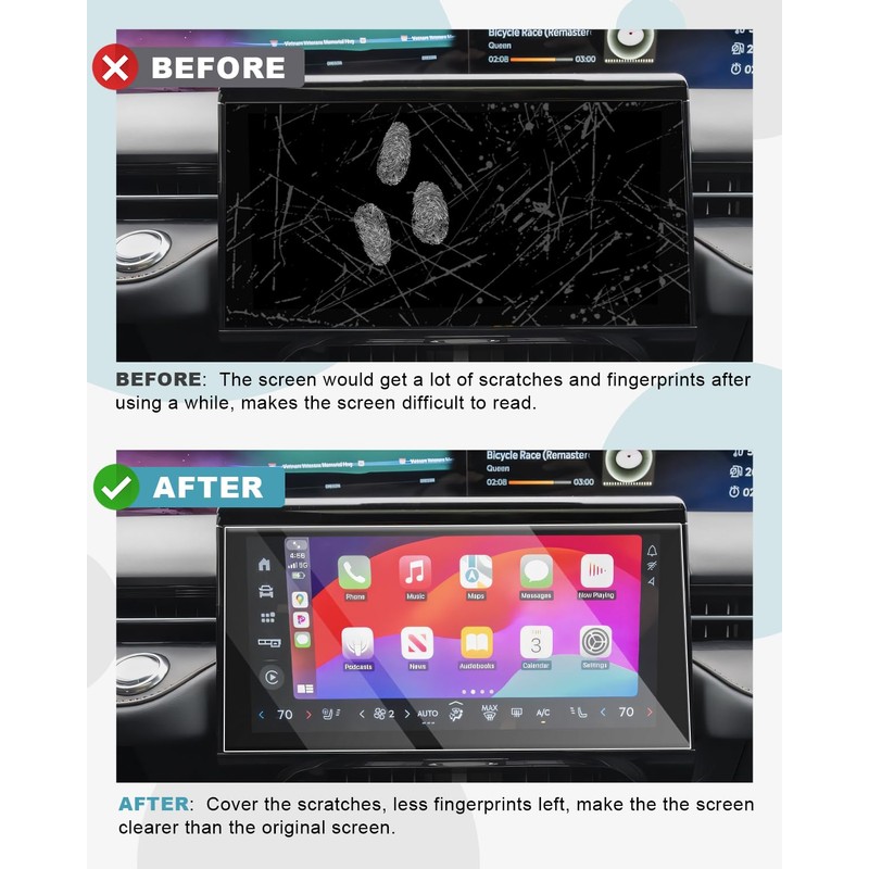 - Package Includes: 1 x Tempered Glass for 11.1-inch Touchscreen, 2 x Tempered Glass for Dashboard Panoramic Dual Displays, 2 x Nano for Intrument Panel Display, 5 x Installation Kits, 1x Instruction