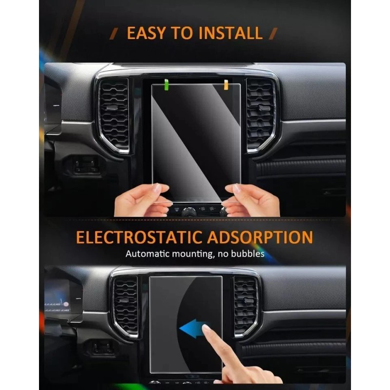 - EASY TO INSTALL: Clean the multimedia creen first with the provided wipe to remove dust, making the glass screen protector fit perfectly with the display screen for Ford Ranger 2024 Accessories