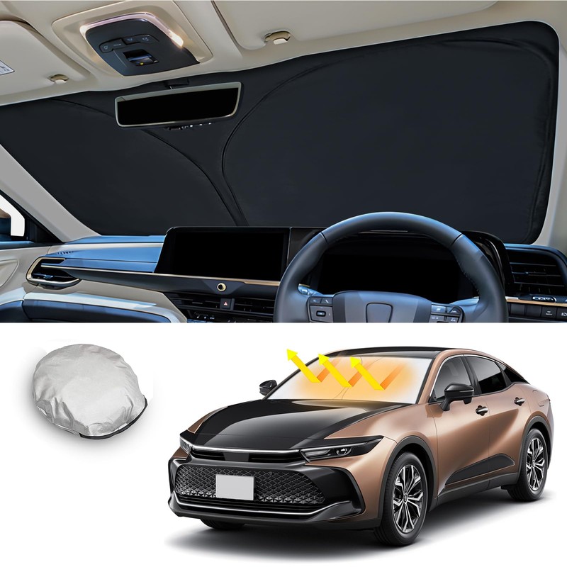 - [Sun Protection & Anti-age] Toyota Crown Crossover Sunshade is treated with a reflective aluminum foil layer to protect your car from the sun when parked and protect the parts of your vehicle. This item is a must-have summer item that not only looks great but also functions as well. Perfect for crime prevention, in the car, outdoors, and for naps