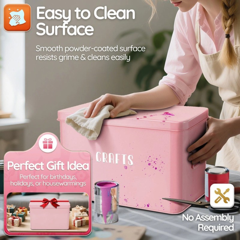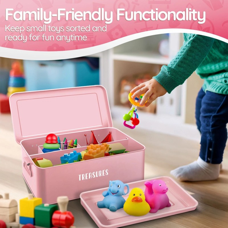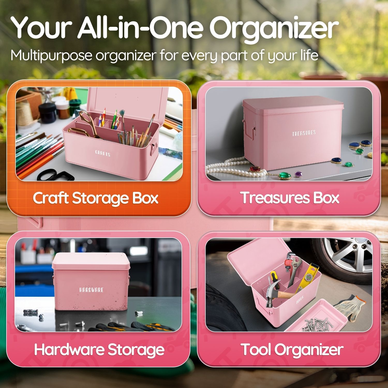 - 1x Tin Storage Box with Removable Tray, Seed Organizer Box and Metal Seed Holder Organizer with Hinged Lid, Versatile Toolbox Container for Crafts, Hardware, Tools and Essentials, Pink