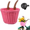 CEASELESLY Children's Bicycle Basket, Handlebar Basket, Woven Mini Bicycle Basket, Bicycle Basket Girls Front, with 2 Adjustable Leather Straps, Bicycle Bell, for Bicycle, Balance Bike, Front Basket