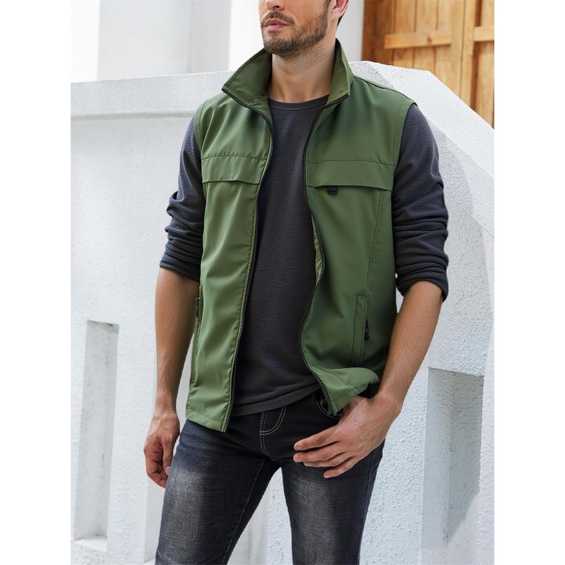 - Sleeveless Design: Sleeveless fishing vest for men with a full-zip closure and stand collar offers easy layering. Pair with tees or shirts for instant mens vests casual lightweight style
