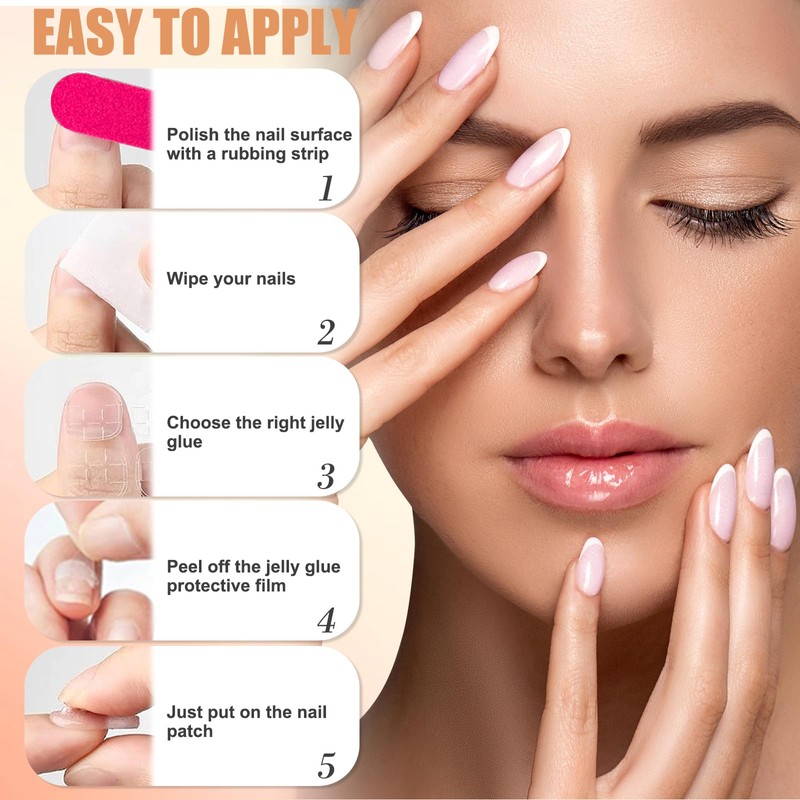 Unsere praktischen Klebenägel sind in wenigen Minuten angebracht und ermöglichen Ihnen eine makellose Maniküre ohne professionelle Hilfe.