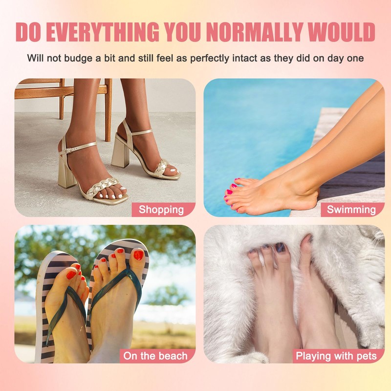 - FIT FOR ANY OCCASION These stick on toe nails will go with any footwear from summer sandals to winter boots. Perfect for beach days, pool parties or casual outings, they add a touch of elegance to your look. The chic French design fits perfectly with open shoes, a must-have for the summer. The stylish packaging makes these press on toenails the ideal gift for women and girls.