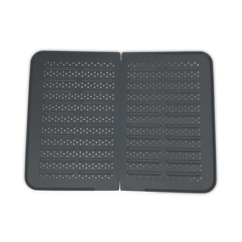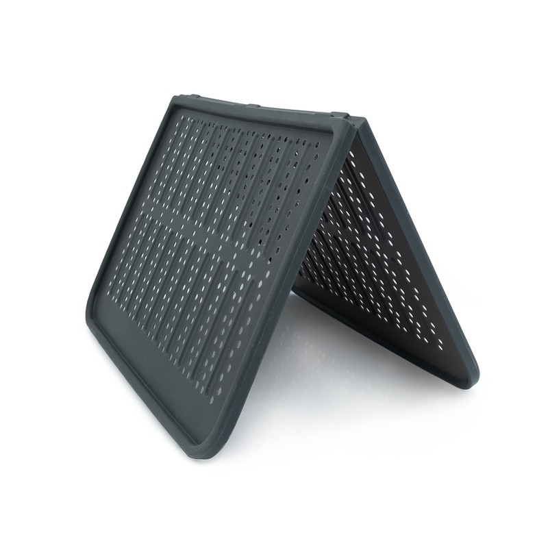 - Metal with silicone coating. Easy to clean. Easy to store. Folding baking tray. French fries plate