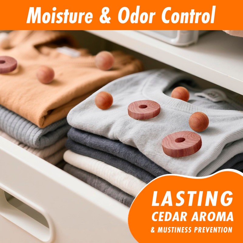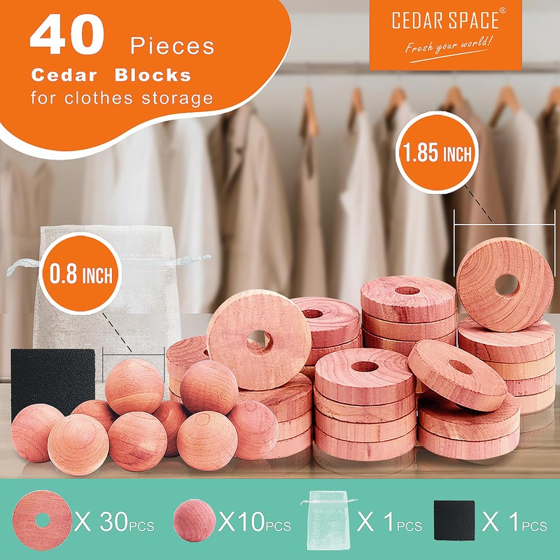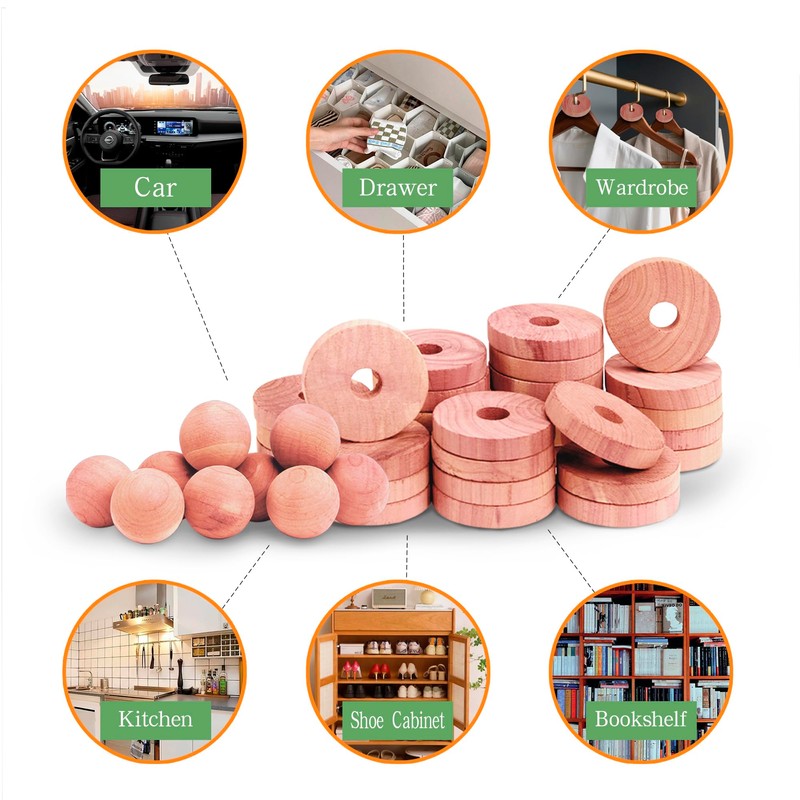 - Pure Natural Cedar Wood - Our cedar balls and cedar rings are made from 100% American Eastern Red Cedar, with the wooden blocks only undergoing polishing and packaging processes without any artificial ingredients added. It is safe for both babies and pets.