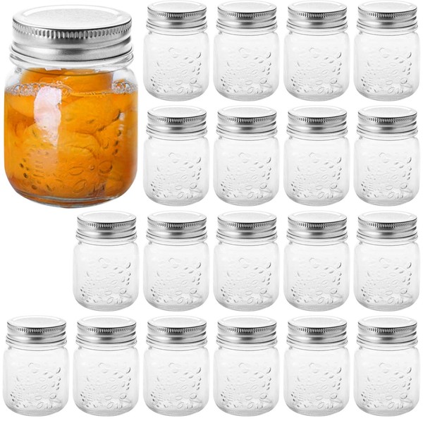 - Include 20 pack mason jars amd 20pcs silver lids. Each meaures 2.4 * 2 *3.3 inches, holding 4oz capacity.