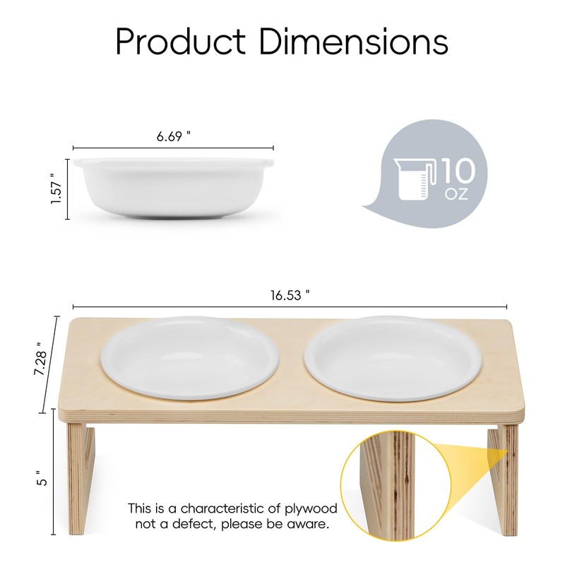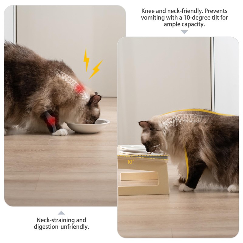 - Elevate Your Cat's Dining Experience: Elevate your cat's dining experience with our 10° tilted wooden stand cat bowl set. Promote a comfortable and natural feeding posture that safeguards your pet's well-being.