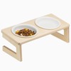 CEEFU Cat Bowls, 10° Tilted Wooden Stand Elevated Cat Food and Water Bowls with Thick Ceramic, Whisker Friendly, Wider Shallower Stable Dishwasher Safe, Ideal for Cats, Kittens and small dogs