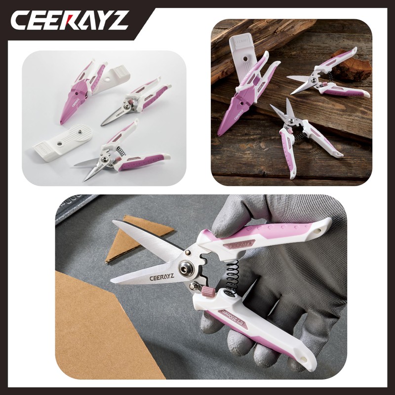 CEERAYZ 200mm Scissors All Purpose Heavy Duty, Garden Shears, Scissors for DIY Projects, Office, Production Lines, Pruning, with Protective Sheath (White/Pink)