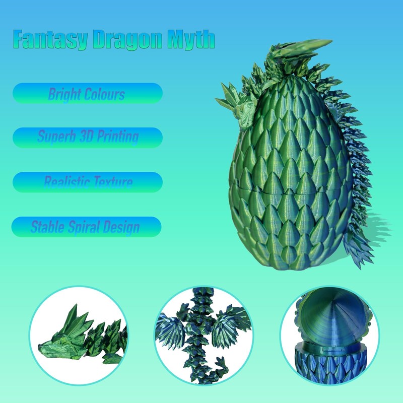 - You will receive: 3D printed dragon with wings with wings is made of Polylactic Acid (PLA) and crafted with 3D printing technology for durability, exquisite details, vibrant colors and realistic textures, the dragon measures 9.44 inches and the egg measures 5.51 inches.