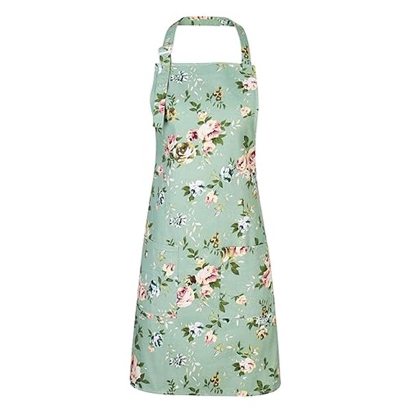 2. Kitchen apron made of cotton. The design is simple yet fashionable. The green background colour and rose pattern give the kitchen a touch of freshness and vitality and make cooking a pleasure.