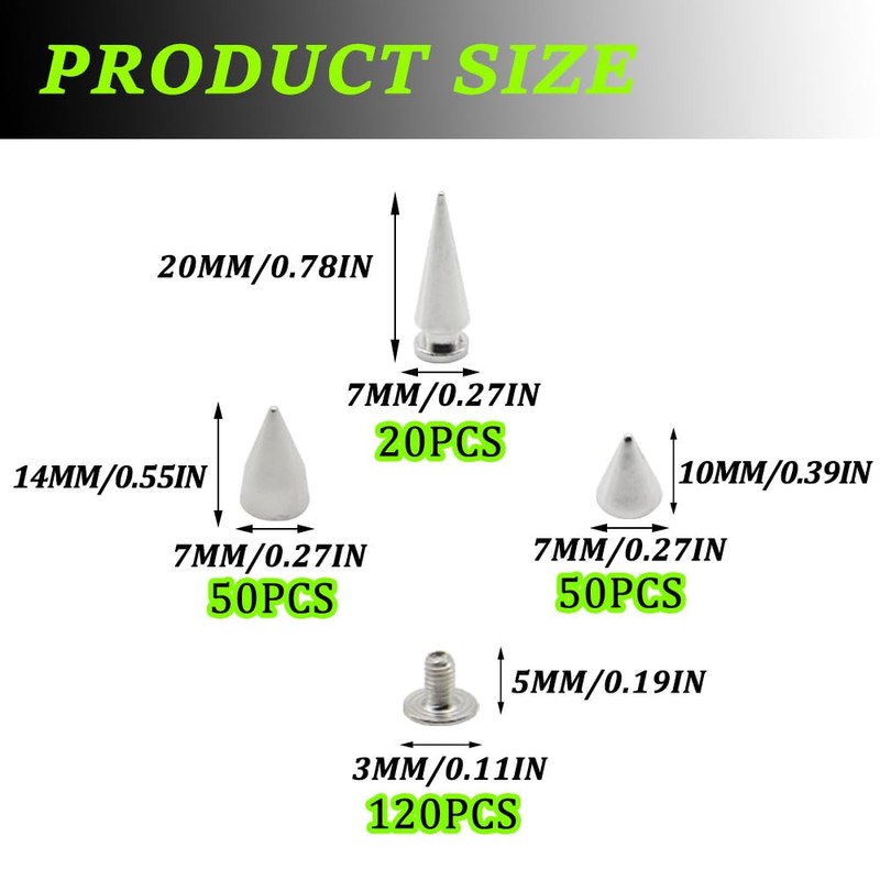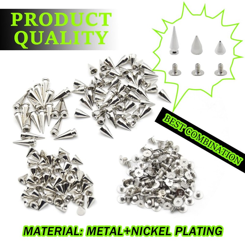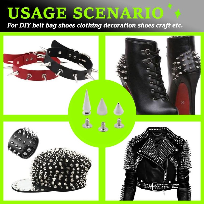 - 1. High Quality Cone Shaped Rivets 3 Sizes Punk Rivets Set