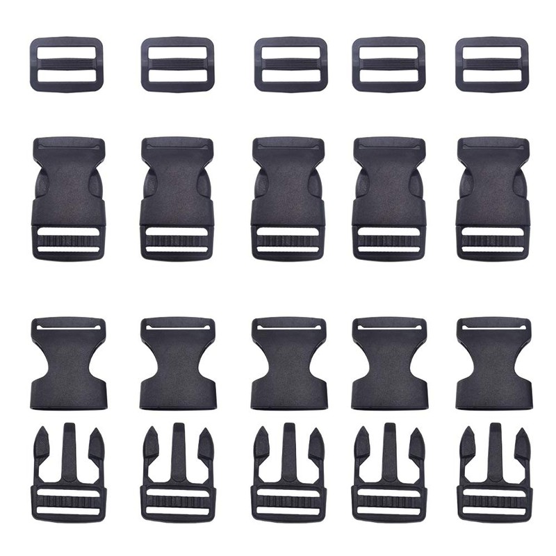 CEEYSEE 20 Set Plastic Double Adjustable Quick Side Release Replacement Clips for DIY Craft Bracelets Pets Dog Collar Strap Webbing Backpack Repairing( 1inch/BK)